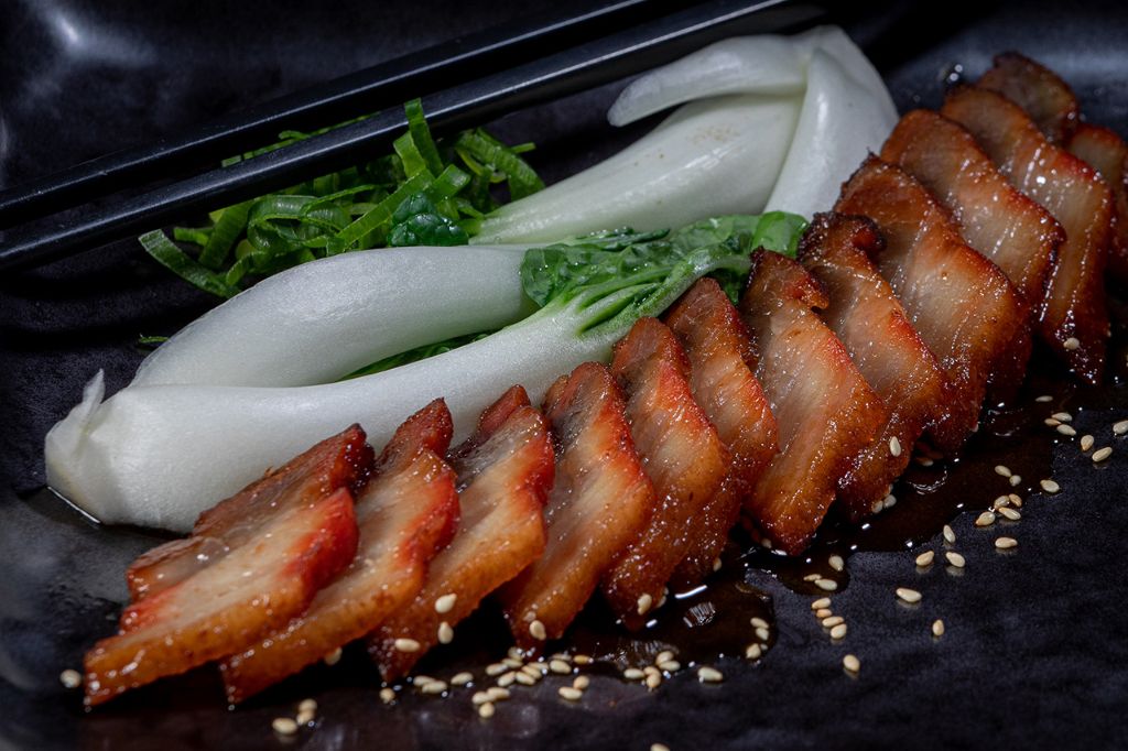 Dun gesneden geroosterd buikspek – honing geglazuurd – zoete soja